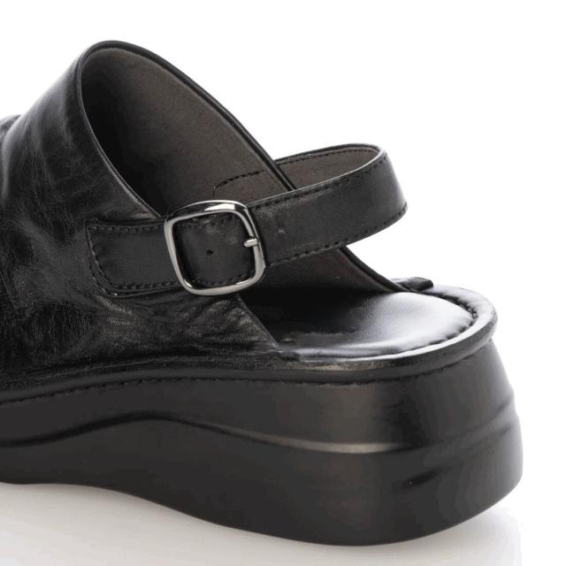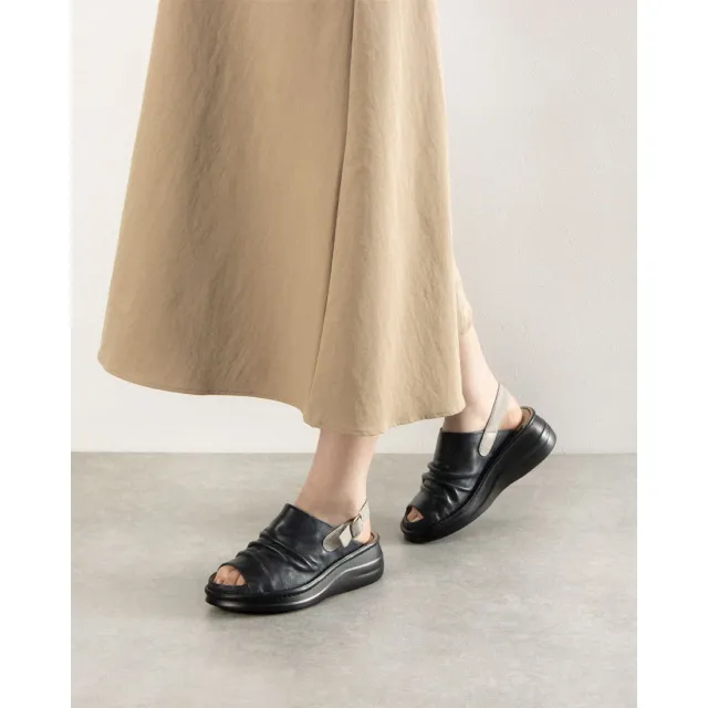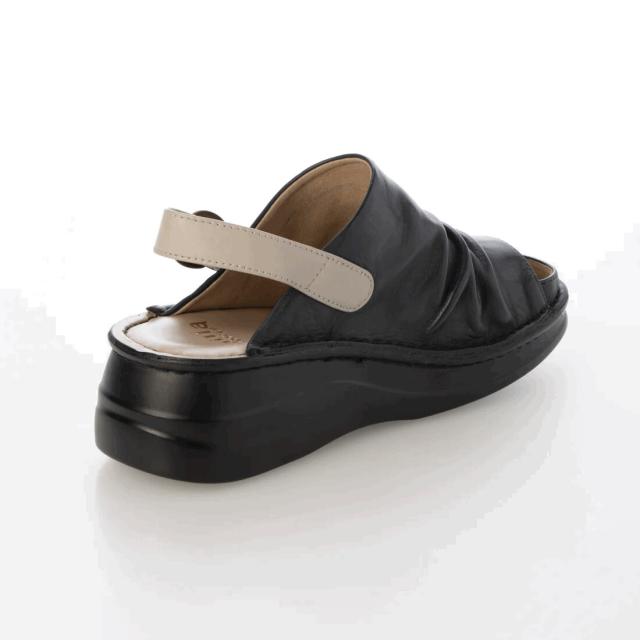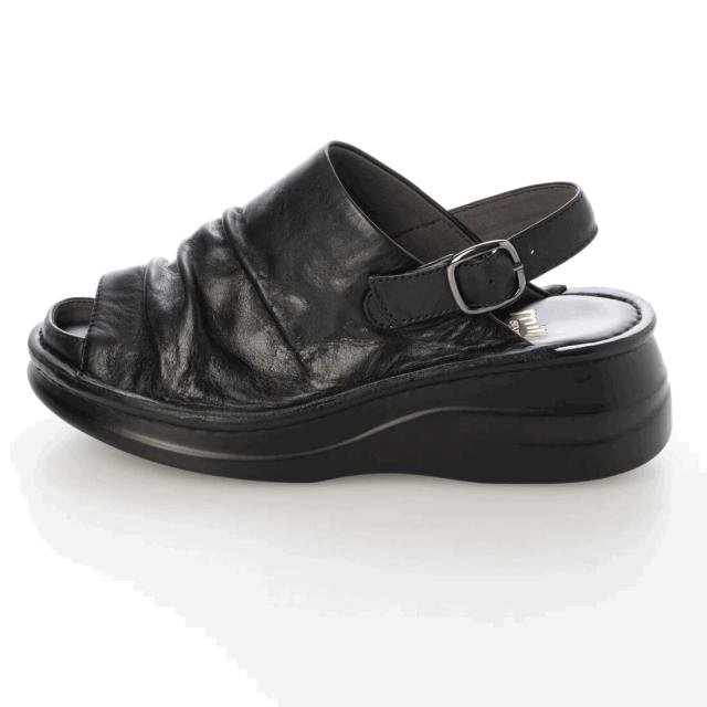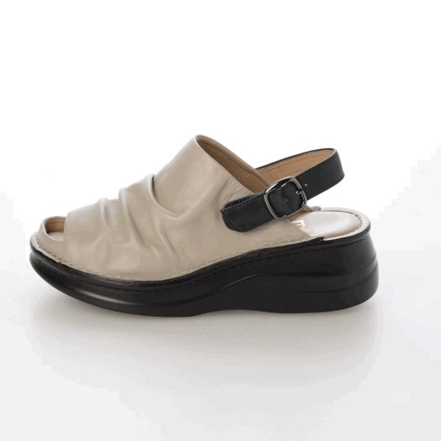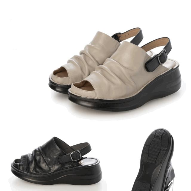 柔らかい革を使用した、クッション性がある厚みのあるソールのコンフォートサンダル。