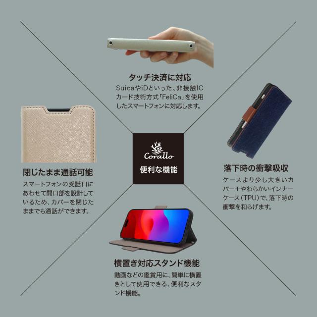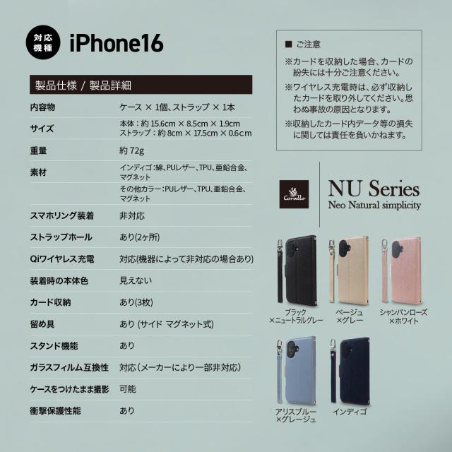 iPhone 16 ケース 手帳型 カード 収納 スマホ ストラップ スタンド 機能 付 スマホケース PU レザー デニム 手帳型ケース [ iPhone16 アイフォン 16 対応 ] Corallo NU