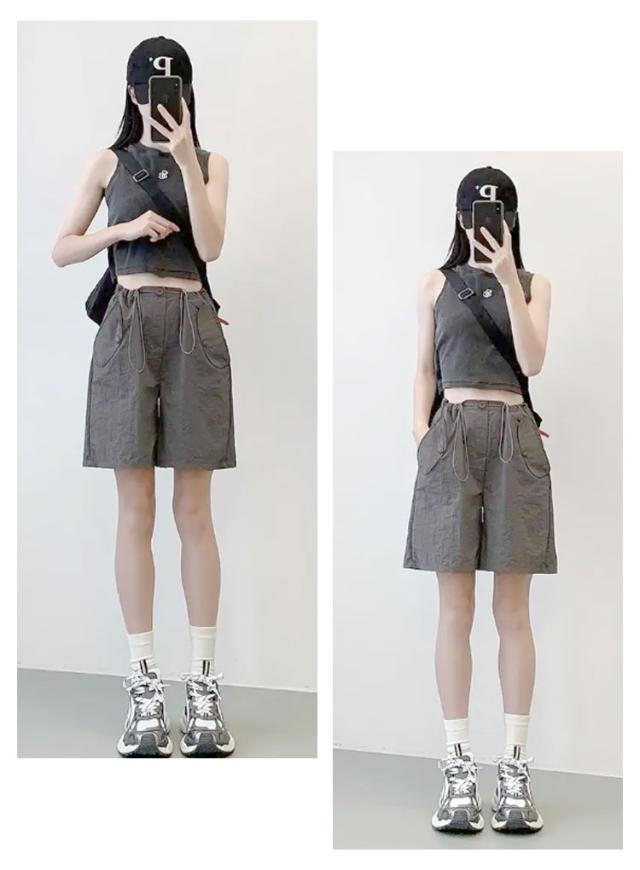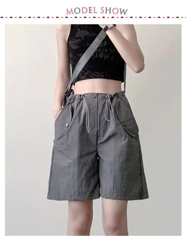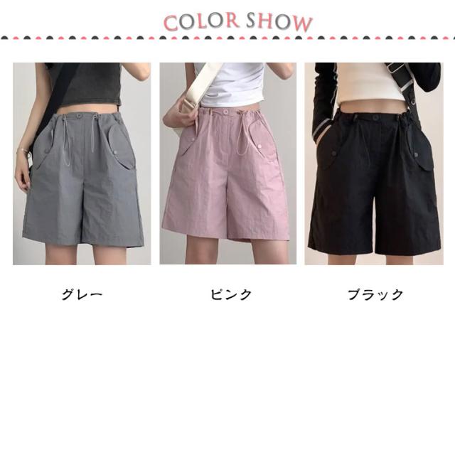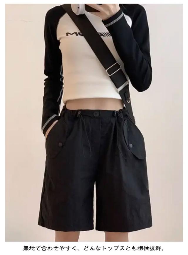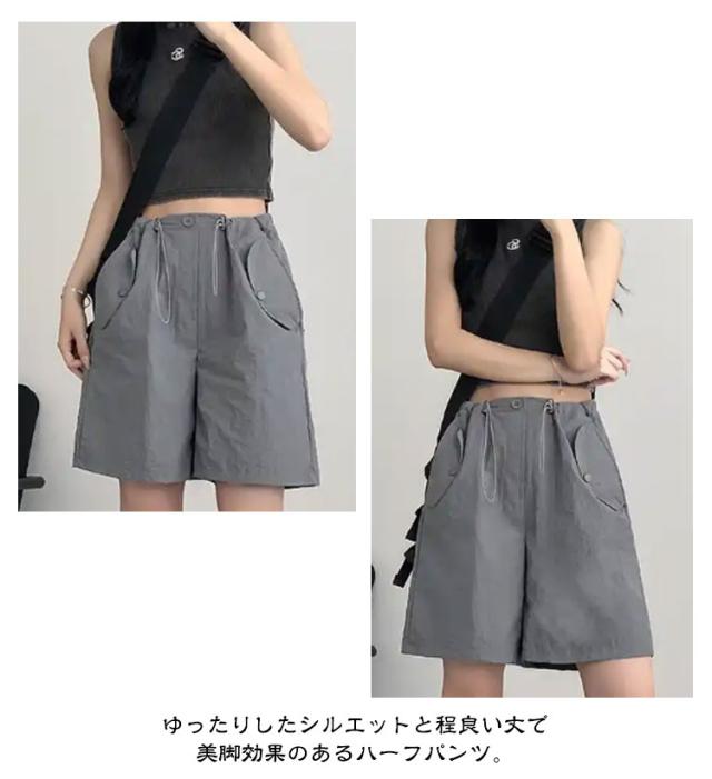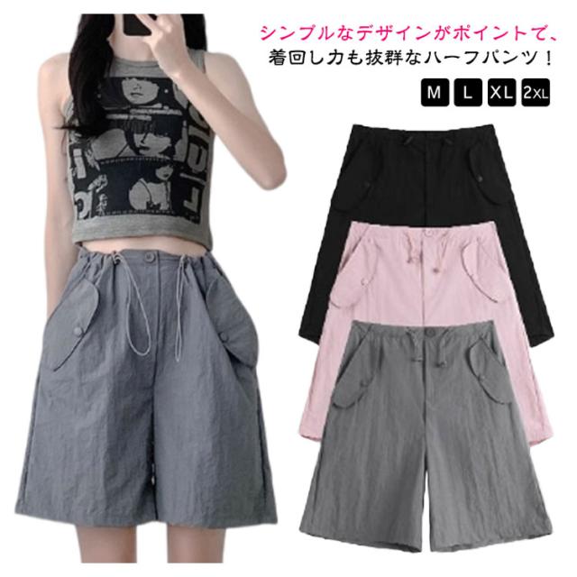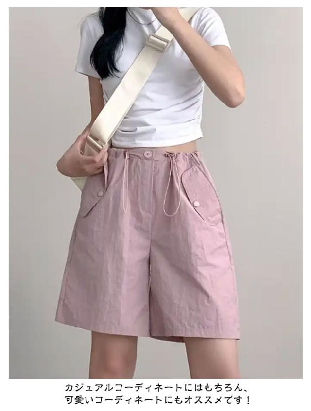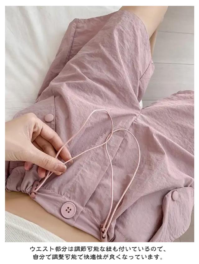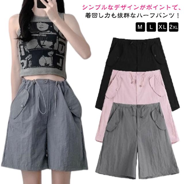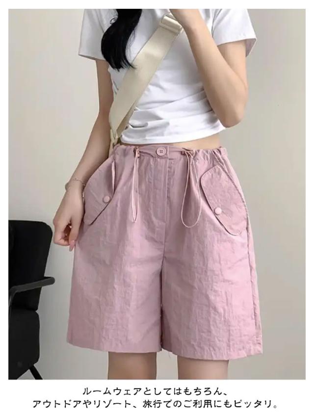 レディース カーゴパンツ 速乾 ボトムス ゆったり ストレート カーゴパンツ ポケット付き 薄手 登山 短パン 5分丈 半ズボン スポーツ カジュアル ハイウエスト 夏物 無地 お洒落 体型カバー 調整紐付き 送料無料