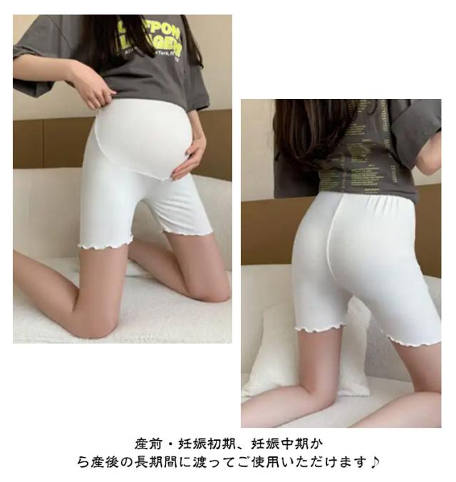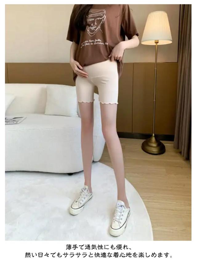 サラサラ 臨月 フリル 涼しい ひんやり 3分丈 レディース レギンス ショートパンツ スパッツ マタニティ 涼感 透け防止 レーヨン 夏用 薄手 ストレッチ 肌着 下着 産前 産後 ペチパンツ アジャスター付き 妊婦用
