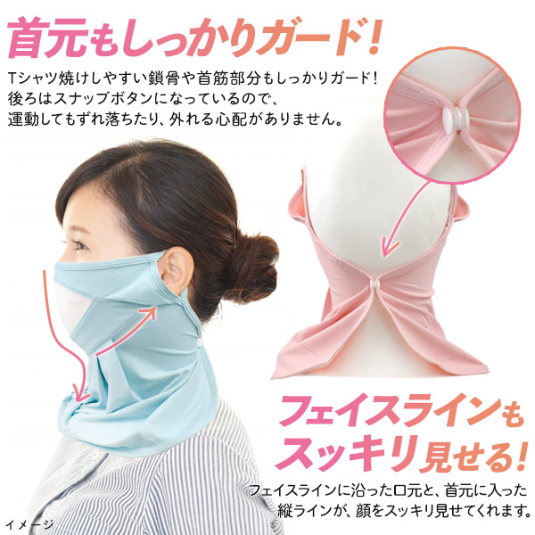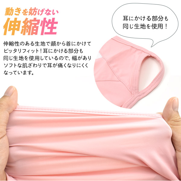 伸縮性のある生地で顔から首にかけてぴったりフィット!