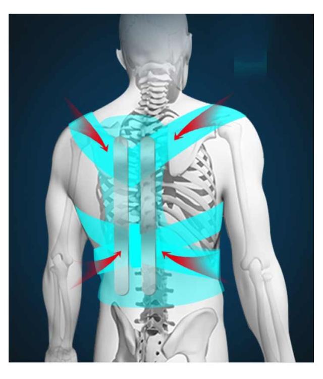 | 「無理なく姿勢を整える」 装着すると、前にでていた頭と肩が後ろへ引っ張らない、美しい姿勢を記憶し、最終的にはサポーターがなくてもきれいな姿勢がキップできる事を目指します。 「快適な座り姿勢をキップ」 快適な装着感、よい状態に補正できている。 「背筋を伸ばす」 背が3センチ高くなる(個体差があります)。 「優しいケア」 背中から腰までサポート、快適な体験。 | |