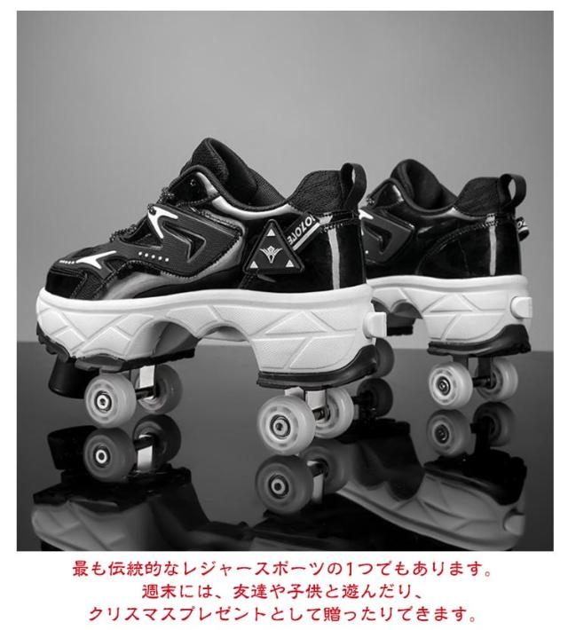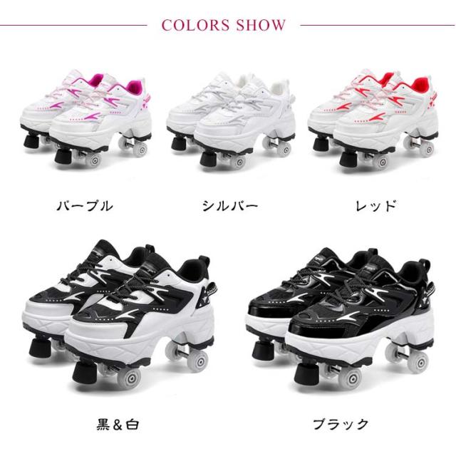 | ローラースケート&ウォーキングシューズの2way使用可能なメッシュスニーカー。【21.5-26.5cm】【男女兼用】 多目的スケートは、市場の従来のローラースケートとは異なります。非表示のウィールは通常のスニーカーのように隠すことができるため、ローラースケートはスケートだけでなく走ることもできます。 シューズ式だから足にぴったりとフィットして滑りやすく、トラックが固定タイプなので、初めての方でも乗りやすい、入門向けローラースケートです。 通気性の良いメッシュ地のアッパーで長時間の着用でも汗でべたつかず快適。 最も伝統的なレジャースポーツの1つでもあります。週末には、友達や子供と遊んだり、クリスマスプレゼントとして贈ったりできます。 | |