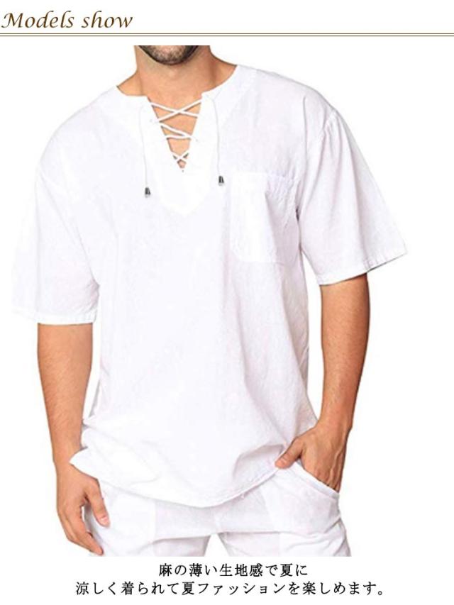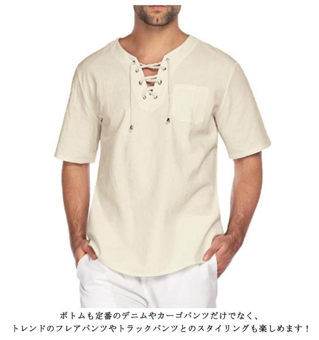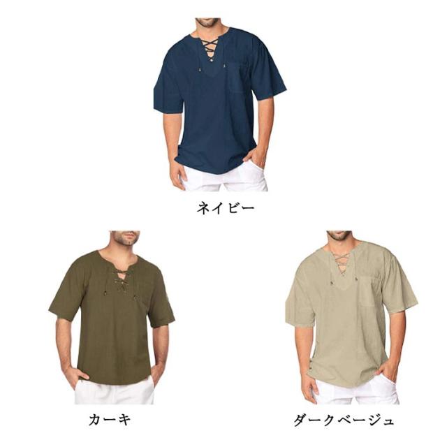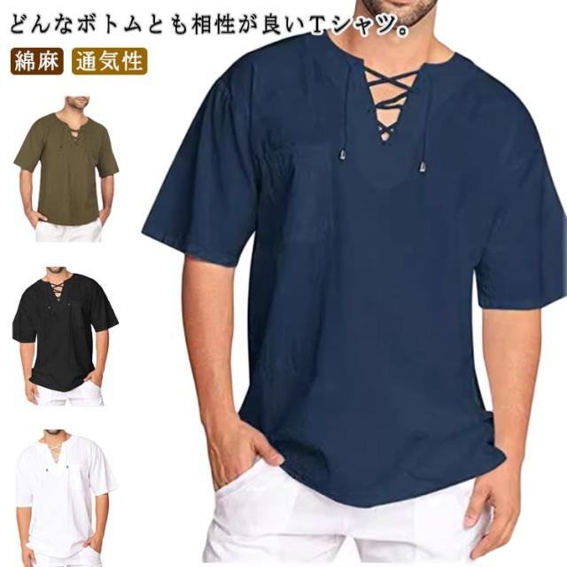 メンズ 無地 カットソー 半袖Tシャツ 綿麻シャツ Tシャツ 半袖Tシャツ 薄手 リネンシャツ リネン 風 シャツ 通気性 ティーシャツ カジュアル キレイめ 夏
