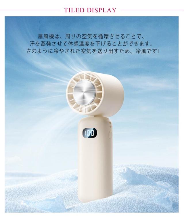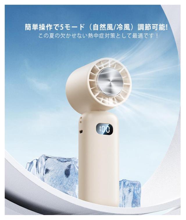 | 瞬間冷却!5段階強風!送風角度180°調節可能! 4000mAh大容量電池 電池残量表示 スマホスタンド/卓上/手持ち 折り畳み式ハンディファン 扇風機は、周りの空気を循環させることで、汗を蒸発させて体感温度を下げることができます。さのように冷やされた空気を送り出すため、冷風です!! ・「極冷」冷却プレート付きで、肌に当てて速攻ひんやり♪ プレート部分はスイッチのONで約10Cに冷却されます。涼しい風になるだけでなく、肌に当ててどこでも冷やせる! ・電池残量一目でわかる 充電タイミングがわかりやすく、外出中突然電源切れの心配が少ない。 ・スマホスタンド スマホを置くと映画鑑賞なども涼しくなります。 ・簡単操作で5モード(自然風/冷風)調節可能! この夏の欠かせない熱中症対策として最適です! ・ヘアードライヤーと同じ回転速度 高い効率で作動して、電力の消費を最小限に抑える ・MAX6時間連続稼働! 4000mAh大容量のバッテリー内蔵で、最大6時間涼風を持続的に満喫できます! ・35dB以下の静音性能 タービンファンノイズ騷音低減と振動低減機能搭載で、静かに送風できます。 20dB(弱モード)静音運転可能ですので、寒すぎ注意の子供さんやベビーにも適用できます。 ・USB充電式 Type-c急速充電! 4000mAh大容量バッテリーを内蔵し、やパソコン、USB充電器に接続すると充電できる扇風機です。 ・手持ち/卓上/腰掛け/首掛け ストラップを取り付けるためのアイレット付き 一台4役、場所は選ばずに4Way使用できますので、様々なシーンで大活躍。 ・小型・軽量・パフフル コンパクトでスタイリッシュなデザインなので、持ち運びにも便利! | |