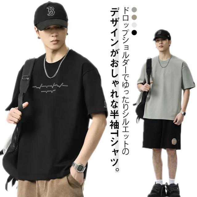 カットソー 春 涼しい ロゴ入り 半袖 夏 男子 Tシャツ おしゃれ ビッグTシャツ ゆったり 大きいサイズ オシャレ ストリート 大人 メンズ ドロップショルダー カジュアル Tシャツ 10代 20代 30代
