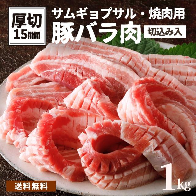 厚切り 豚バラ 1kg 15mm厚 切り込み入 送料無料 大容量 厚切 サムギョプサル 焼肉 豚肉 肉 バラ肉 ブロック 豚バラ 豚ばら 冷凍 食品 業務用 角煮 BBQ