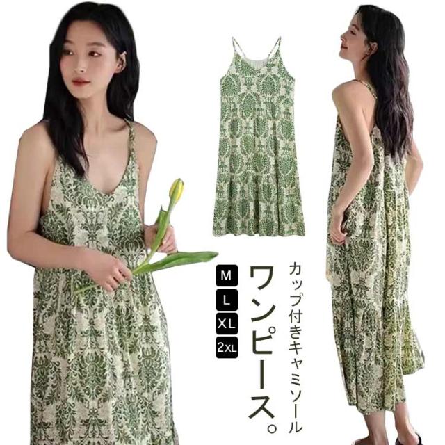 キャミソールワンピース 夏 キャミソールワンピース レディース ロング ワンピース キャミワンピース カップ付き ルームウェア 部屋着 袖なし 大きいサイズ パジャマ ワンピース ナイトウエア