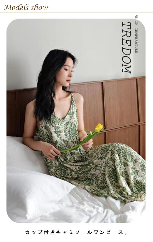 | カップ付きキャミソールワンピース。 一年を通してサラッと爽やかに、快適にお過ごし頂けます♪ ブラカップ付きなので1枚着るだけでOKの楽チンアイテム♪ ルームウェアはもちろん、ちょっとしたお出かけにもお使いいただけます。 リラックスした着心地でおうち時間を可愛く心地よく過ごしたい方へ。 | |