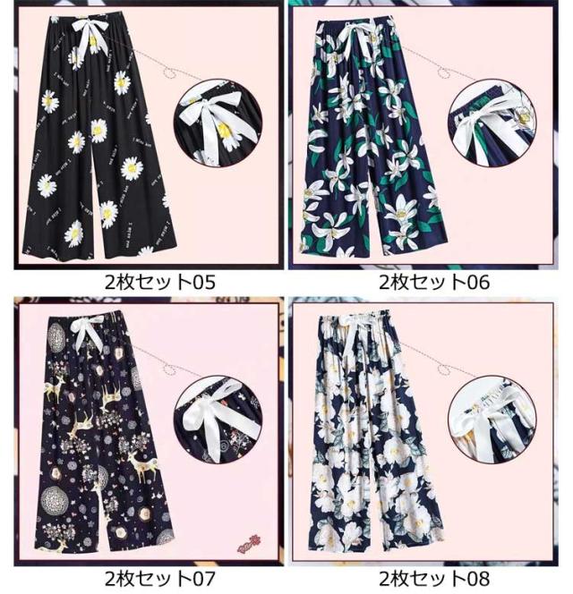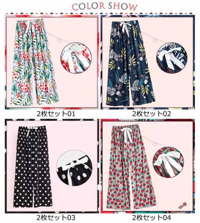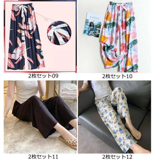夏用 柄 レディース 総柄 夏 綿 ルームパンツ リラックスパンツ 夏 16色 ワイドパンツ 9分丈 九分丈 ステテコ 夏 レディースステテコ ステテコパンツ 2枚組 すててこ 春 レディース