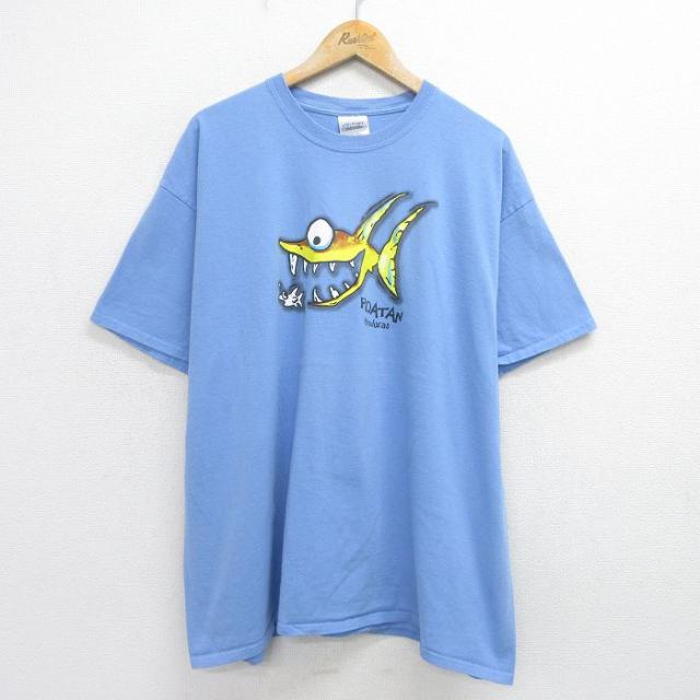 【商品名】 XL★古着 半袖 ビンテージ Tシャツ メンズ 00年代 00s 魚 大きいサイズ コットン クルーネック 薄紺