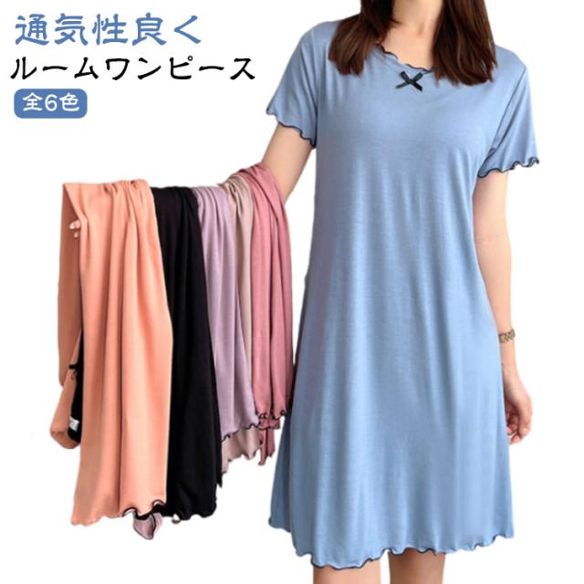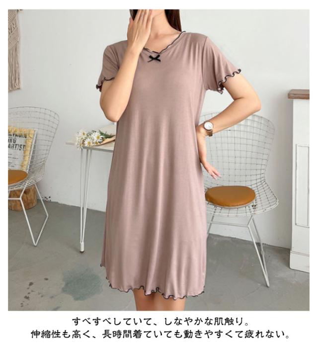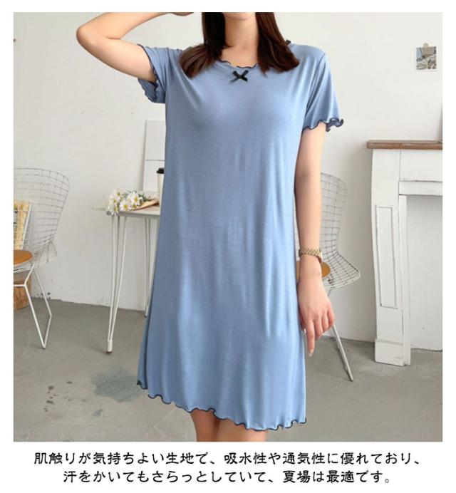 夏 ワンピース おしゃれ 可愛い ルームウェア Tシャツワンピース パジャマ ネグリジェ レディース 膝丈 ルームワンピース 婦人用 かわいい 部屋着 寝間着 寝巻き 無地 シンプル 女性 大きいサイズ ねまき 半袖