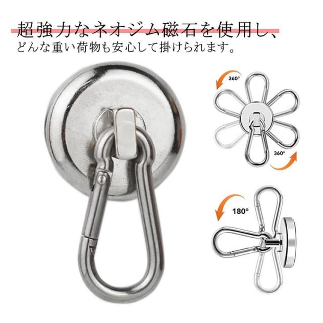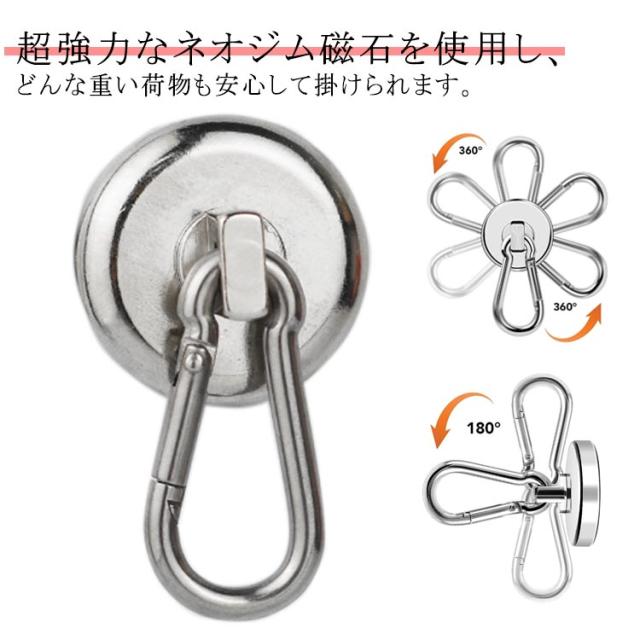 カラビナ 浴室 垂直耐荷重34kg 3タイプ選べる 41kg ラック マグネット マグネットフック 強力 サンシェード オーニング カラビナ付 カラビナ お風呂 55kg オフィス 収納 超強力 キッチン 吊り下げ 2個セット
