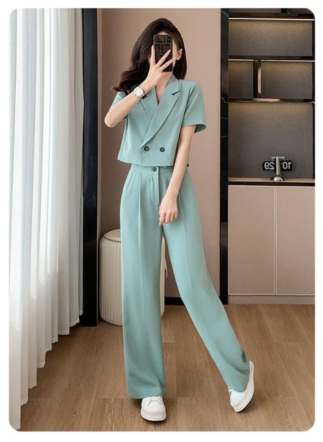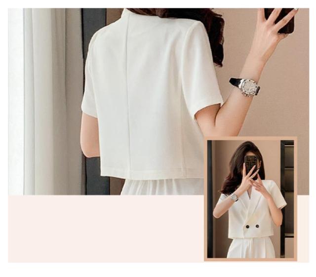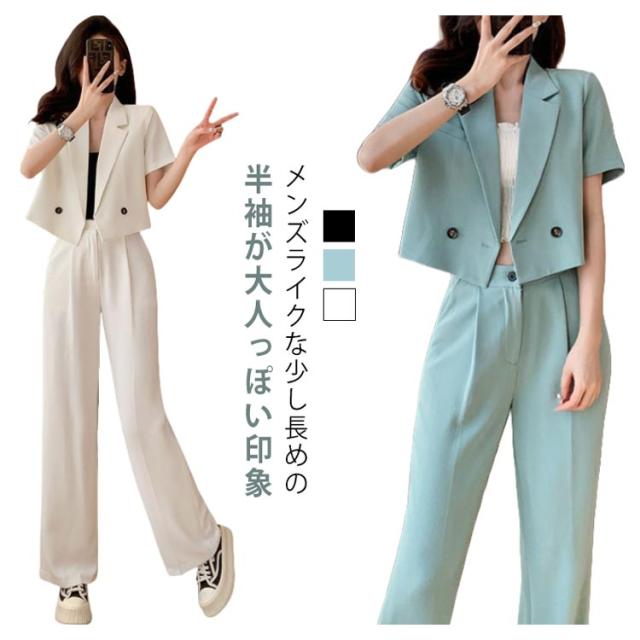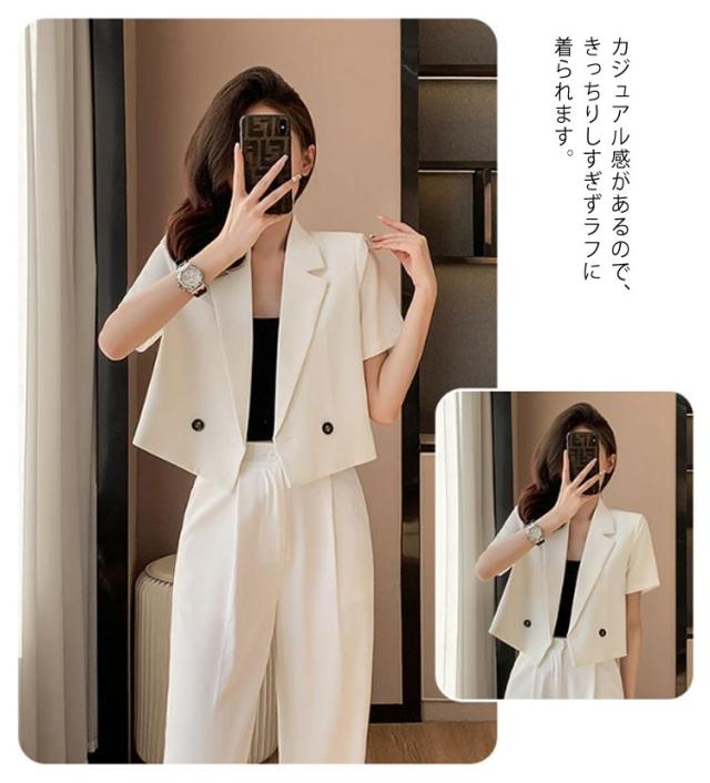 2点セット トップス レディース 結婚式 きれいめ サマージャケット 卒業式 長ズボン ジャケット ショート ゆったり 春 2点セット ママスーツ 体型カバー 夏 大きいサイズ 二次会 ワイドパンツ 半袖 入学式 大人 ハイウエスト 上品 30代 40代 50代 黒