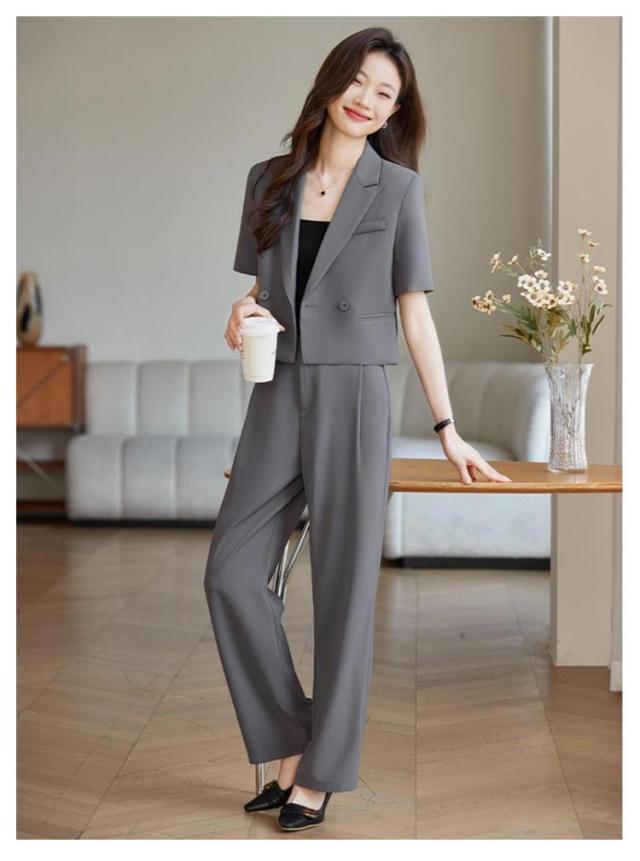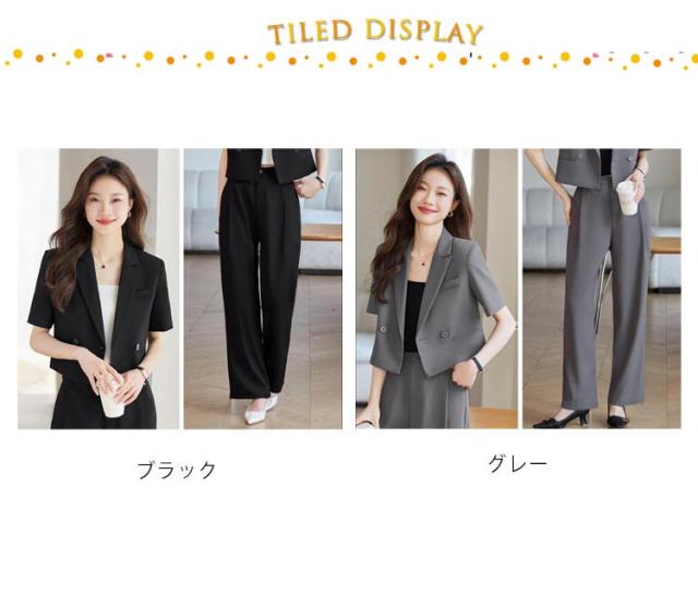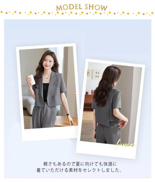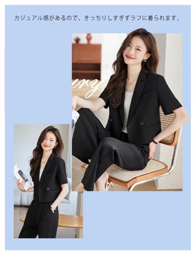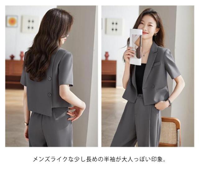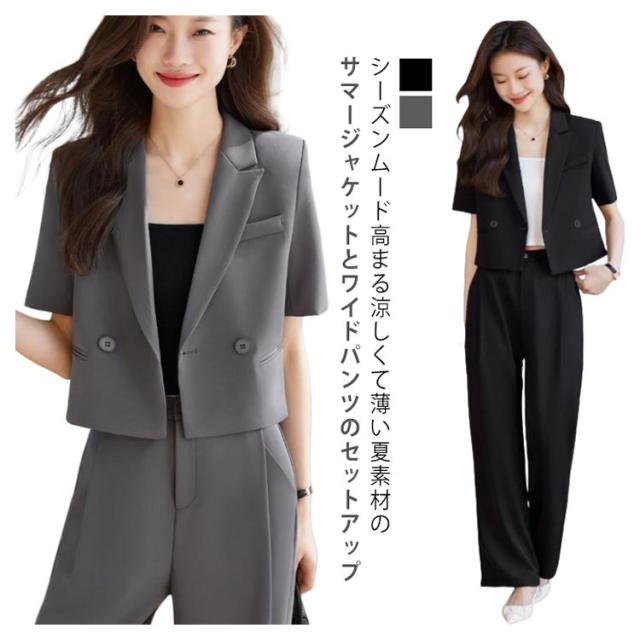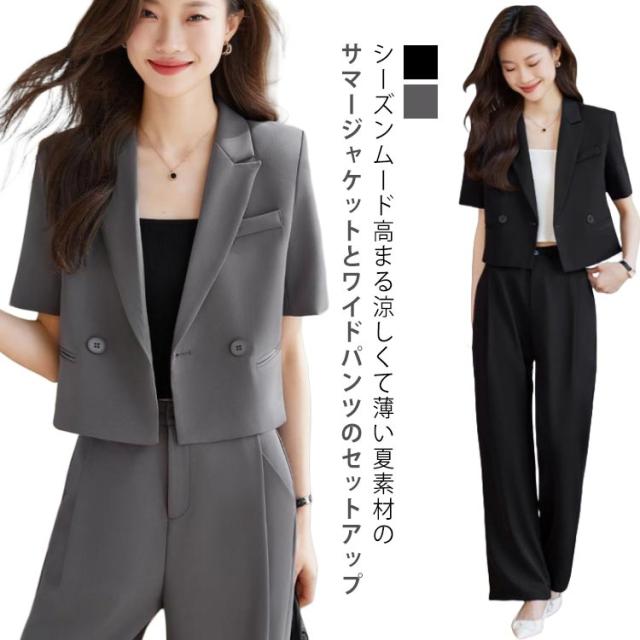 2点セット ショート トップス セットアップ 体型カバー ワイドパンツ ジャケット 半袖 セットアップ 長ズボン サマージャケット ゆったり ママスーツ レディース 春 夏 大きいサイズ 二次会 結婚式 卒業式 入学式 大人 ハイウエスト 上品 30代 40代 50代