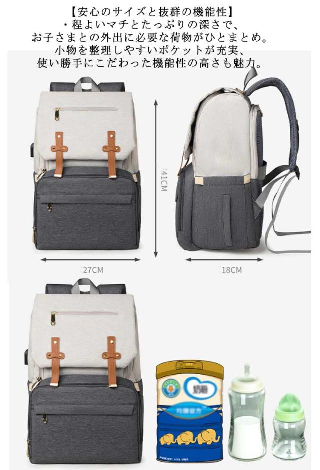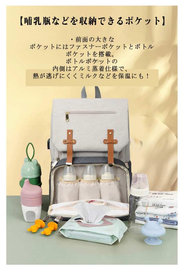 | ・色んなシーンで大活躍◎たっぷり入って機能的なマザーズバッグ新登場。 【安心のサイズと抜群の機能性】 ・程よいマチとたっぷりの深さで、お子さまとの外出に必要な荷物がひとまとめ。小物を整理しやすいポケットが充実、使い勝手にこだわった機能性の高さも魅力。 【うれしい2ルーム仕様】 ・収納ルームは2つに分かれており、荷物が増えてもごちゃつかず取り出しがスムーズ。 【収納力のあるメインルーム】 ・メインルームはマグネットフラップ&ラウンドファスナーで、中身がこぼれ落ちを防ぎつつ大きくオープン。お子さまの着替えもラクラク入り、整理整頓しやすいポケットも多数装備。 【ミニノートPCやタブレットが入るサブルーム】 ・背面のサブルームは、左右どちらからも開くダブルファスナー式。クッション材で電子機器を保護してくれるから、持ち運びも安心。(※メインルームのクッションポケットにもノートPCなどを収納可能。) 【哺乳瓶などを収納できるポケット】 ・前面の大きなポケットにはファスナーポケットとボトルポケットを搭載。ボトルポケットの内側はアルミ蒸着仕様で、熱が逃げにくくミルクなどを保温にも! 【サッと取り出せる外ポケット】 ・その他にも4つの外ポケット付き。使用頻度の高いスマホなどを収納したり、サイドゴムポケットには折りたたみ傘やペットボトルを。片側はティッシュなどをサッと取り出せる穴付き。 | |