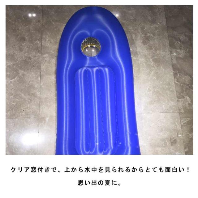 | 水中観察可能・しっかりハンドル付き 120cmのビッグサイズで乗り心地最高の子供用シュノーケルボード。 クリア窓付きで、上から水中を見られるからとても面白い!思い出の夏に。 両サイドハンドル付きで、バランスが取れやすい、水の上でのんびりリラックスできるフロート。 万が一、片方が破損した場合を考え、「2気室」の当社浮き輪はより安全・安心。 | |