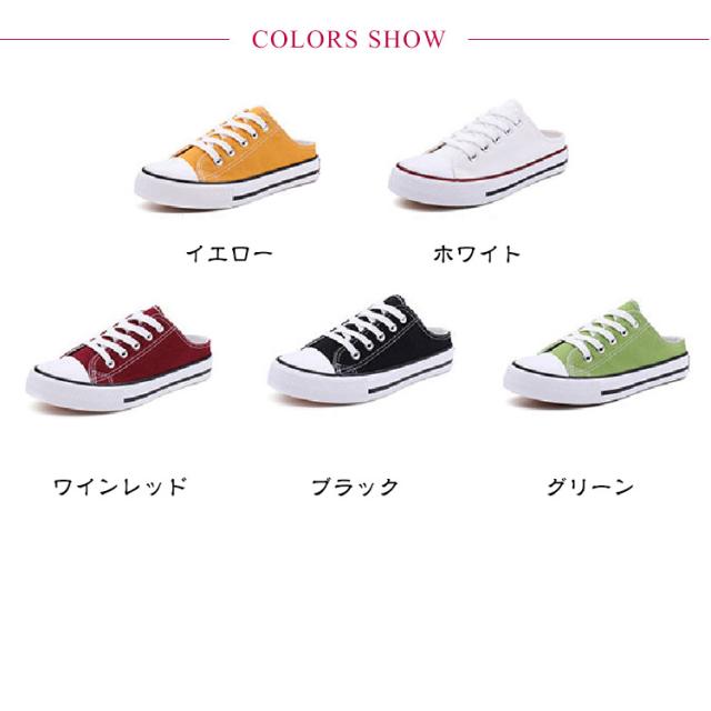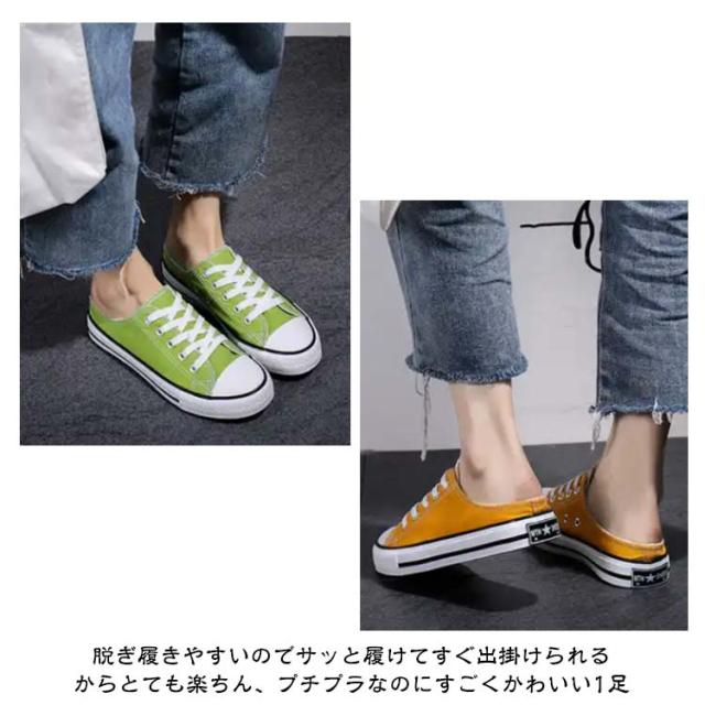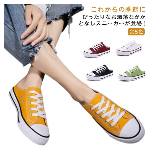 サンダル 靴 レディース コンフォートシューズ かかとなし 歩きやすい かかとなし 踵なし スニーカー つっかけ 軽量 スニーカー 軽い スリッポン キャンバス ウォーキングシューズ 疲れない 痛くない 春夏 カジュアルシューズ 黒 白 グリーン イエロー シンプル