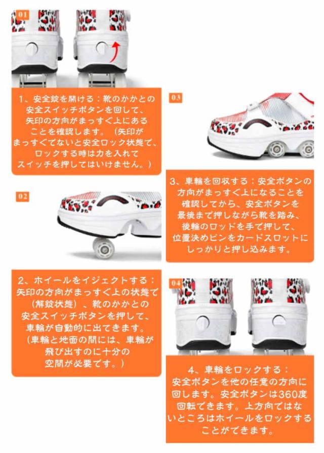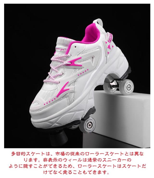 | ローラースケート&ウォーキングシューズの2way使用可能なメッシュスニーカー。【21.5-26.5cm】【男女兼用】 多目的スケートは、市場の従来のローラースケートとは異なります。非表示のウィールは通常のスニーカーのように隠すことができるため、ローラースケートはスケートだけでなく走ることもできます。 シューズ式だから足にぴったりとフィットして滑りやすく、トラックが固定タイプなので、初めての方でも乗りやすい、入門向けローラースケートです。 通気性の良いメッシュ地のアッパーで長時間の着用でも汗でべたつかず快適。 最も伝統的なレジャースポーツの1つでもあります。週末には、友達や子供と遊んだり、クリスマスプレゼントとして贈ったりできます。 | |