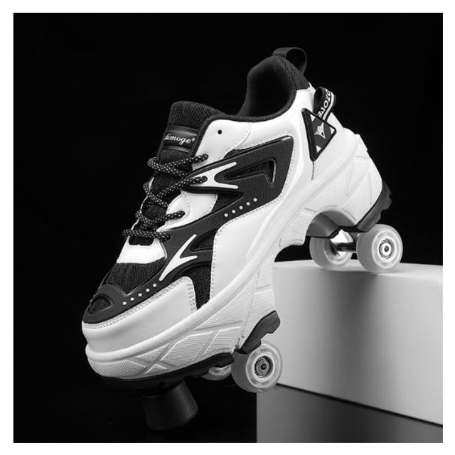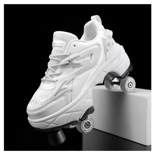2WAY メッシュ ローラースケート 大人 子供 子ども ローラーシューズ スニーカー 配色 ローラーシューズ おしゃれ 4輪 レディース メンズ キッズ 学生 運動靴 ワンボタン スポーツ 靴 輪収納できる ローラースニーカー 配色 初心者 通気性 白 黒 ブラック