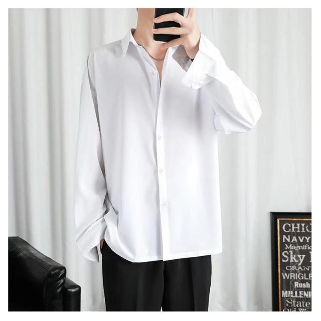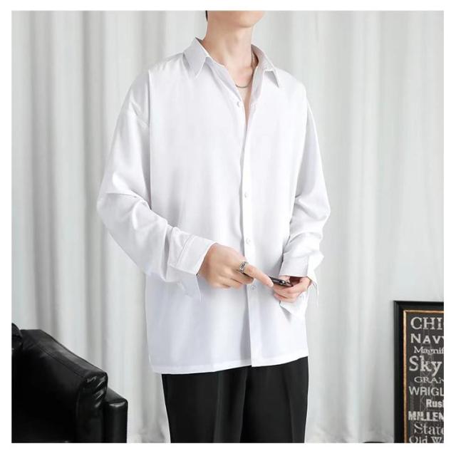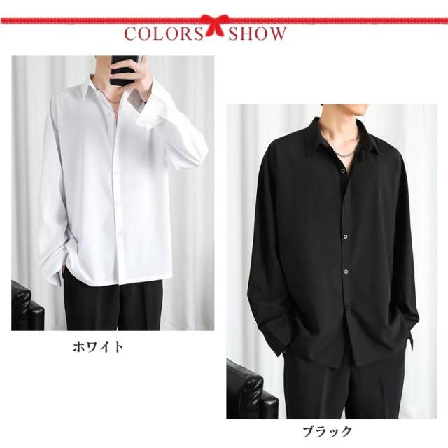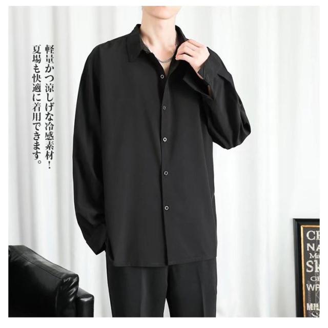 前開き メンズ 大きいサイズ ブラック 長袖 カジュアル 接触冷感 夏 アイスシルク ワイシャツ 涼しい 無地 白 黒 ホワイト シャツ ビジネス ゆったり ひんやり おしゃれ
