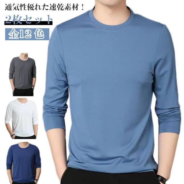 野球 インナーシャツ メンズ 長袖 2枚セット!tシャツ 夏 2枚セット!tシャツ ストレッチ Tシャツ 涼しい ストレッチ 薄手 長袖tシャツ 接触冷感 吸水速乾 作業服 作業着 トレーニングウェア ゴルフ バイク 大きいサイズ トップス 釣り キャンプ 長袖tシャツ