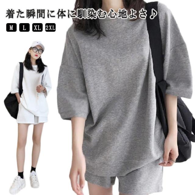 カジュアル 夏 レディース Tシャツ ルームウェア 春 ショートパンツ スウェット セットアップ 無地 部屋着 楽ちん 可愛い ゆったり 2点セット 半袖ジャージ ショートパンツ スポーツウェア 5分袖