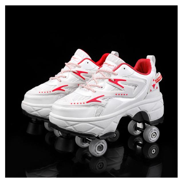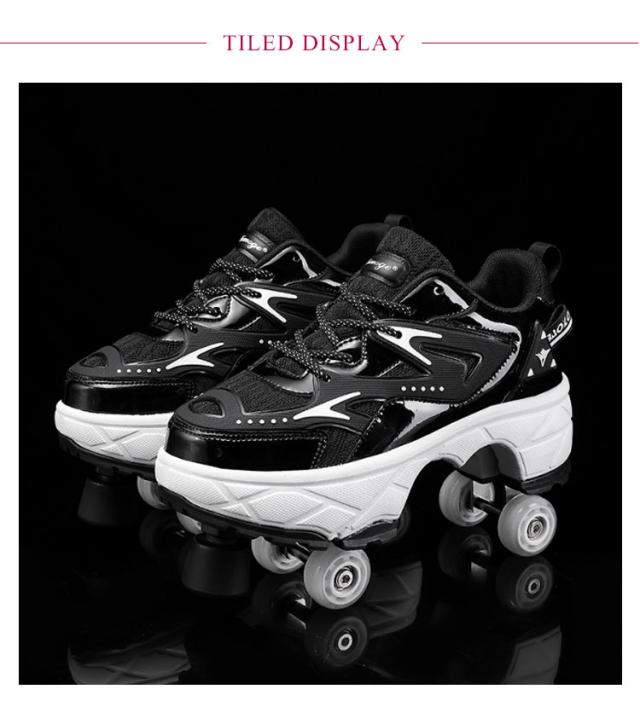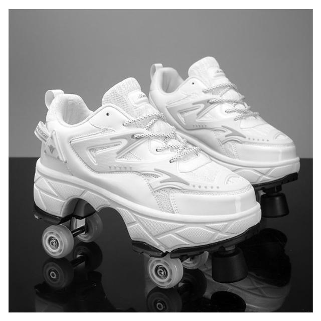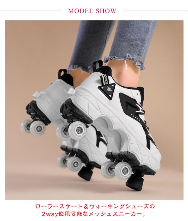 4輪 ローラーシューズ メッシュ 運動靴 輪収納できる 子供 ローラースケート 大人 ワンボタン ローラーシューズ 配色 おしゃれ レディース メンズ キッズ 学生 子ども 配色 スニーカー 靴 シューズ ローラースニーカー 2WAY 初心者 通気性 白 黒 ブラック