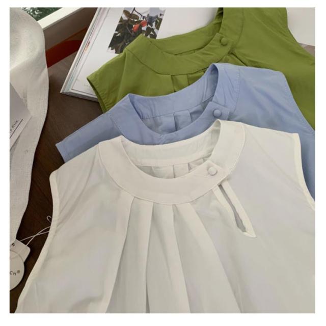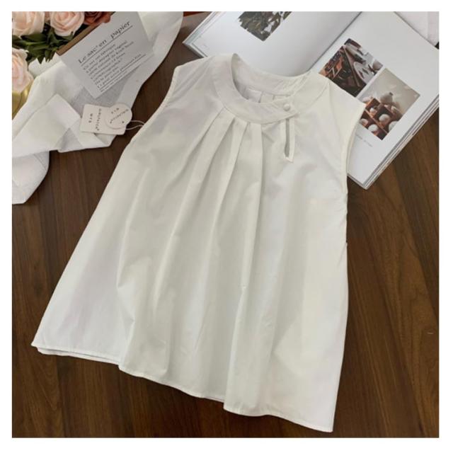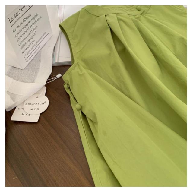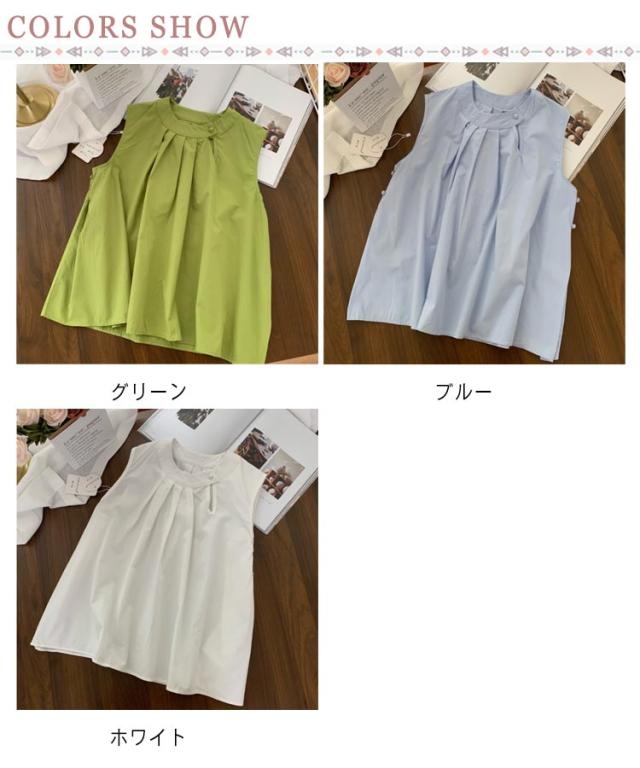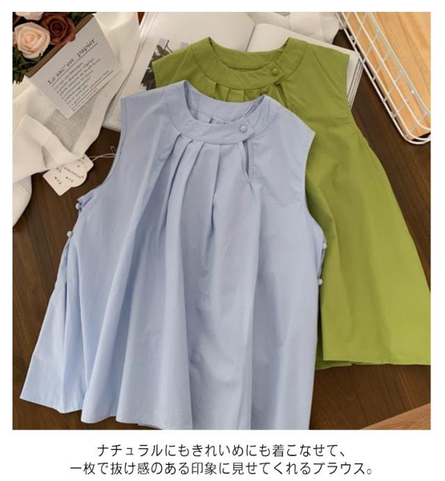 大人可愛い ノースリーブシャツブラウス Aライン フレア ブラウス 袖なし クルーネック 無地 トップス ギャザー タックブラウス トップス 体型カバー 上品 夏 春 ぽっちゃり女子 大きいサイズ 送料無料 OL 通勤 お出かけ