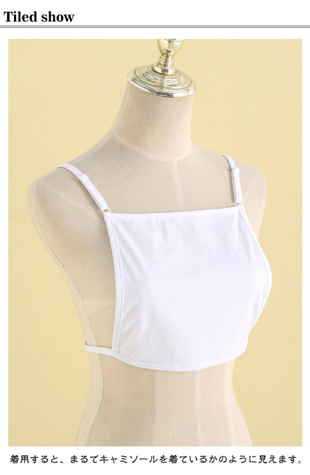 | 胸の谷間を隠すブラカバー 着用すると、まるでキャミソールを着ているかのように見えます。 胸元のチラ見え防止対策に最適の便利グッズです。 普段使いは勿論、ドレスアップの時にも着用できる便利なアイテムです。 開きすぎた胸元の洋服とのコーディネイト、パーティードレスのアクセント、入学式(入園式)、卒業式(卒園式)などさまざまな機会で活用できます。 | |