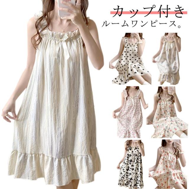 袖なし パッド付き 膝丈 レディース 夏 キャミソールワンピース 可愛い パジャマ 夏 カップ付き かわいい 春 ルームウェア 秋 パッド付き ネグリジェ 部屋着 ナイトウエア 寝間着 女性用 ゆったり 総柄 シンプル ワンピース