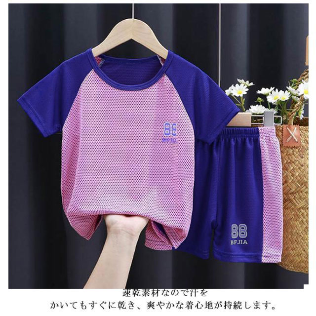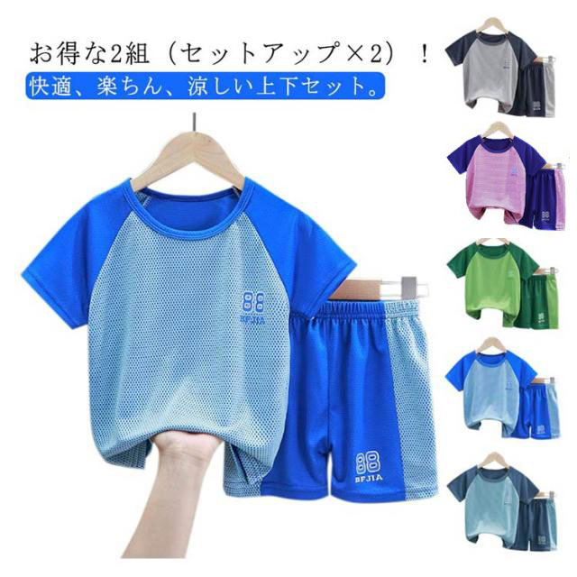 お得な2組(セットアップ×2)速乾 配色 キッズ ジャージ 半袖 上下 半袖Tシャツ ハーフパンツ おしゃれ 男の子 女の子 セットアップ スポーツウェア 吸水速乾 メッシュ スポーツ 通学 旅行 夏 上下セット 子ども服 バスケットボール ジュニア 100-170cm