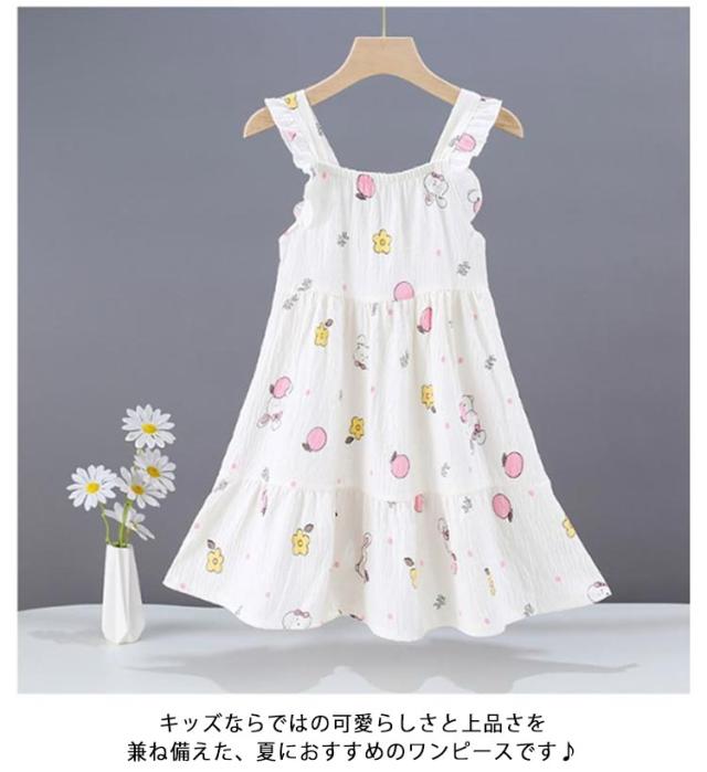 | 涼しげな素材感とたっぷりフリルが可愛い(ハート柄、花柄、ピーチ柄)KIDSワンピース 風合いの良い綿混天竺素材を使用。軽くて柔らかく、優しい肌触りで、リラックスタイムを快適に たっぷりギャザーを施し、ふんわりとしたAラインシルエットにすることで、着心地の良さとエレガントな雰囲気を兼ね備えた一枚に仕上げました。 下着を上手に隠してくれる太めのフリル肩紐がポイント。 キッズならではの可愛らしさと上品さを兼ね備えた、夏におすすめのワンピースです♪ デイリースタイルにはもちろん、リラックスタイムのルームウエアとしてもおすすめです。 | |