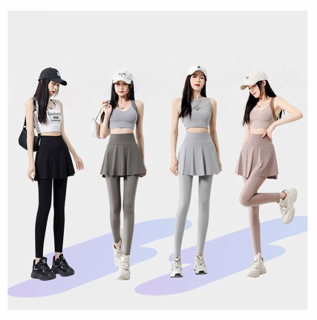 | ・スリット入りスカート付きレギンス ・スカートとレギンスが一体化したデザインで、とても楽ちんです♪ ・ウエストゴムでしっかりホールド!ダンスレッスンやフィットネスに最適! ・シンプルデザインで他衣服とも合わせやすく、使いやすさも重視したスポーツウェア! | |