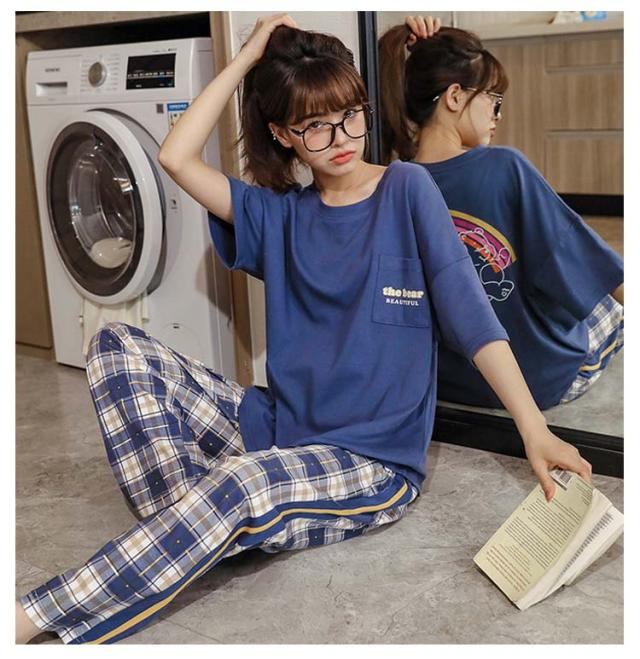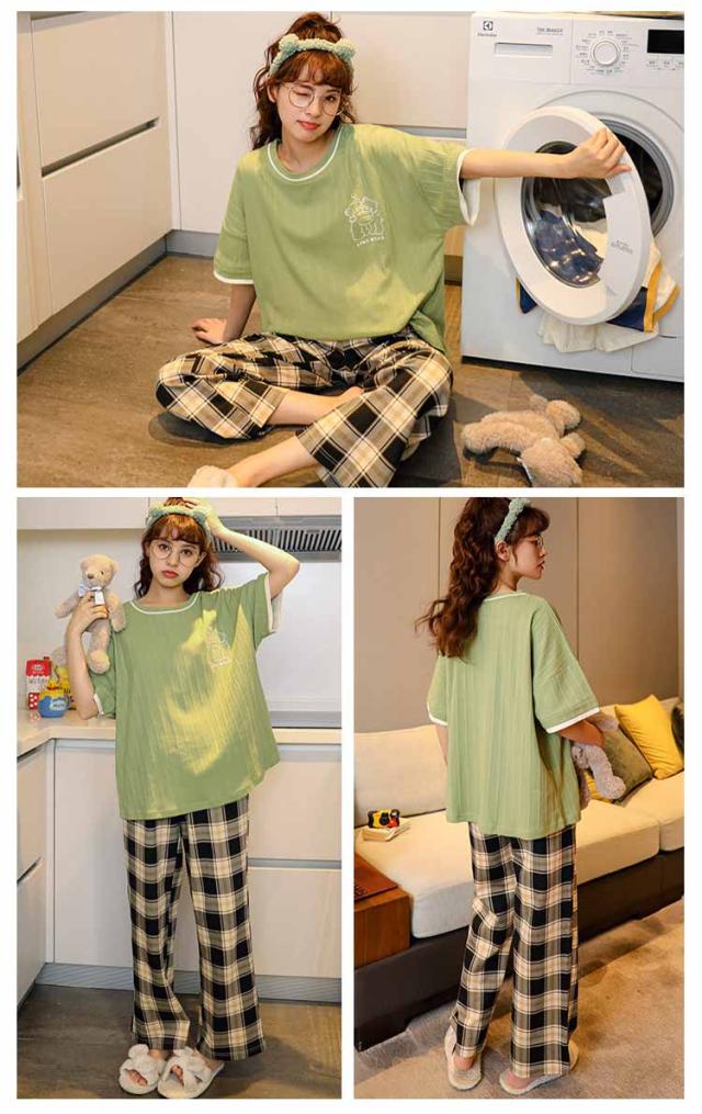 上下セット ルームウェア レディース レディース セット 綿 パジャマ 半袖 ルームウェア セットアップ 可愛い 部屋着 春 半袖 半袖 ワンマイルウェア 着 ロングパンツ 外出 冬 秋 夏 秋冬 春夏 綿 おしゃれ 大人可愛い 外出 できる 部屋 韓国