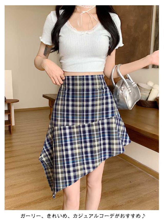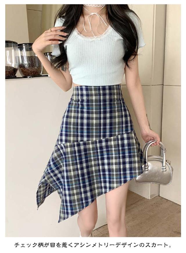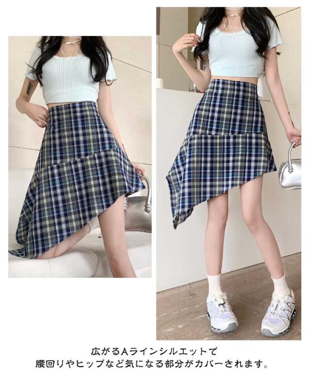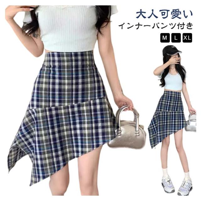 | 【インナーパンツ付き】【M L XL】 チェック柄が目を惹くアシンメトリーデザインのスカート。 ガーリー、きれいめ、カジュアルコーデがおすすめ♪ ウエストゴムで楽ちんなのもうれしいポイントです。 広がるAラインシルエットで腰回りやヒップなど気になる部分がカバーされます。 | |