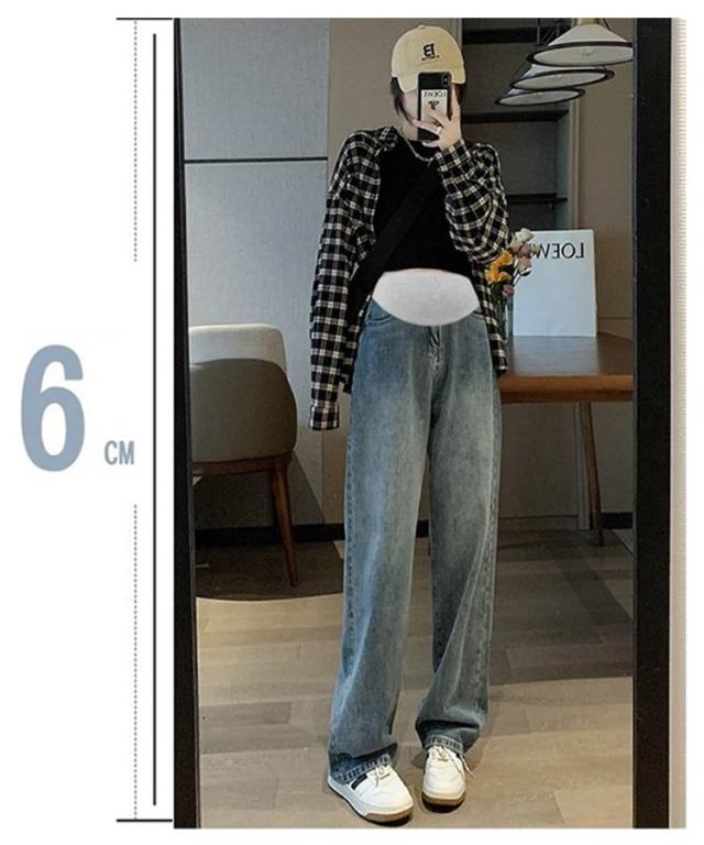 | デニムワイドパンツ M〜2XL コーデしやすく幅広い着こなしができるだけでなく、体型カバーもできます。 締め付けずゆったりと履けます。 お腹周りが締め付けない幅広ゴム大切なお腹をすっぽりと優しく包みます。 | |