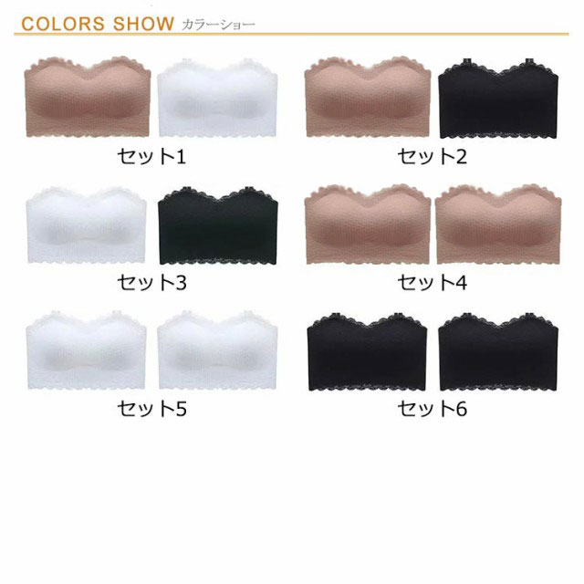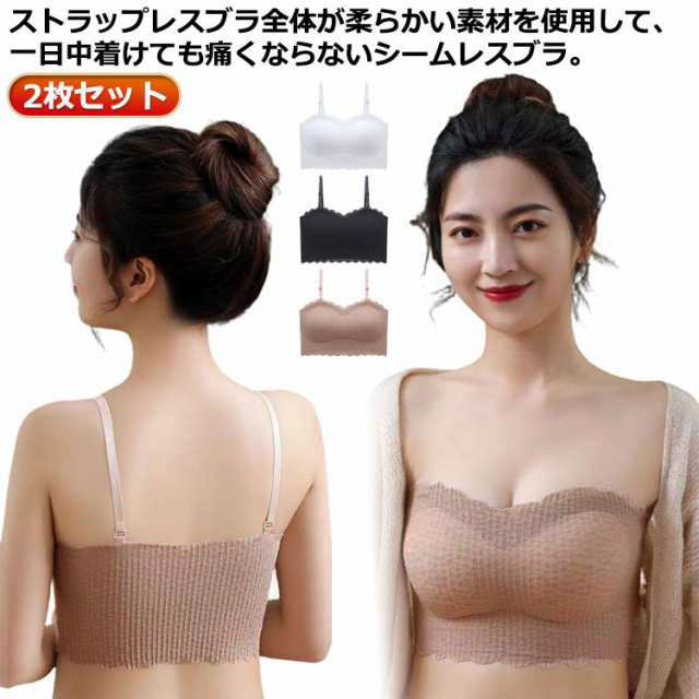 2枚セット チューブトップブラ ベアトップ 大きいサイズ レディース カップ付 下着 ブラジャー 肩紐なし ずれない ストラップレス ナイトブラ 肩見せ 紐なしブラ ノンワイヤーブラ 盛りブラ 谷間 育乳ブラ 小胸 ドレス用下着 ブラトップ 送料無料