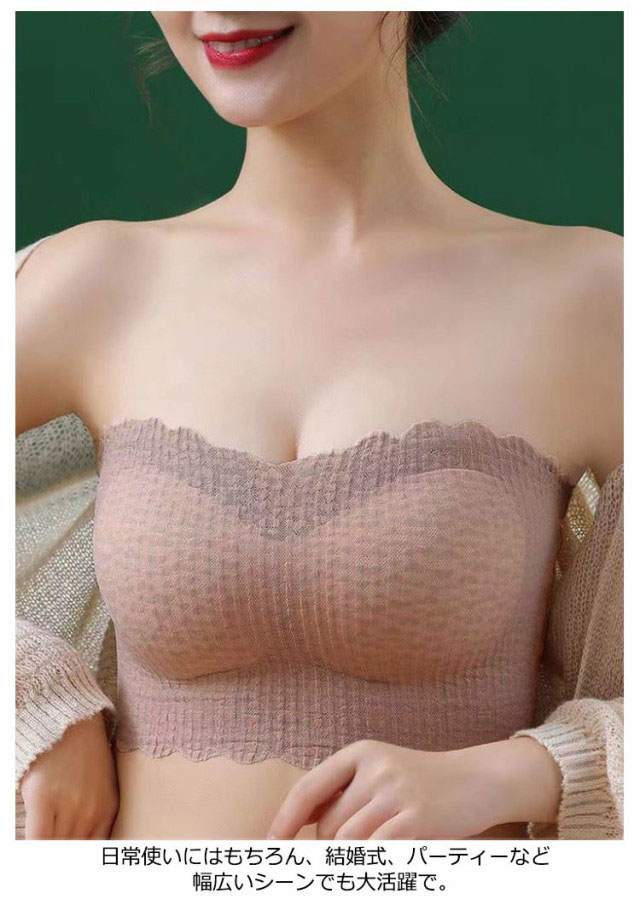 | ストラップレスブラ全体が柔らかい素材を使用して、一日中着けても痛くならないシームレスブラ チューブトップブラ自体しっかりしていてクッションもふんわりしているので、着け感がいい 高弾性生地で伸縮性が優れた、程よいフィット感で、しっかりした素材感伸縮性が優れて窮屈感がなく、快適な着心地が実現できます。 ノンワイヤー ストラップレスブラ全体が柔らかい素材を使用して、一日中着けても痛くならないシームレスブラ。 日常使いにはもちろん、結婚式、パーティーなど幅広いシーンでも大活躍です | |