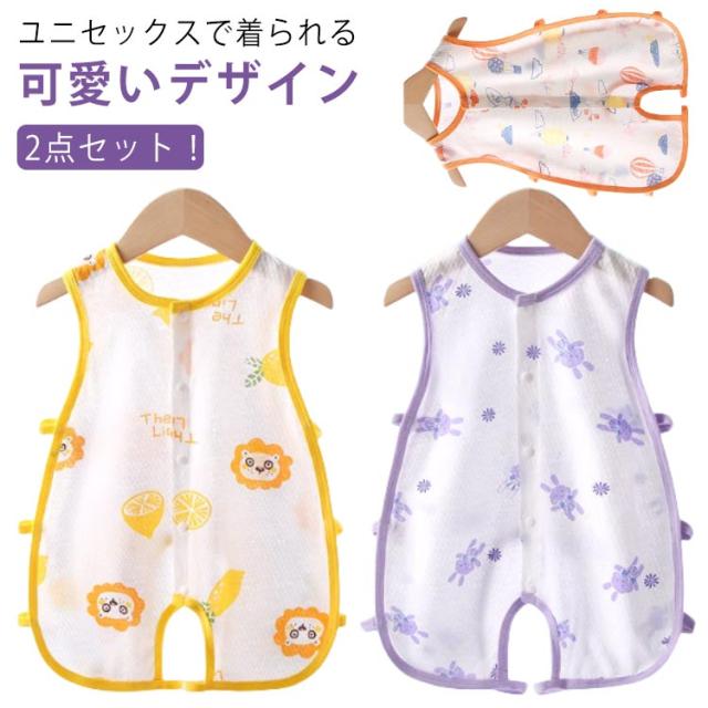 2点セット ロンパース 夏 男の子 女の子 カバーオール 肌着 ベビー ノースリーブ タンクトップ 春 無地 ベビーウェア ベビー服 涼しい ひんやり 66 73 80 90 100 ボディオール ボディスーツ 下着 ルームウェア 子供服 かわいい 出産祝い ギフト プレゼント 送料無料