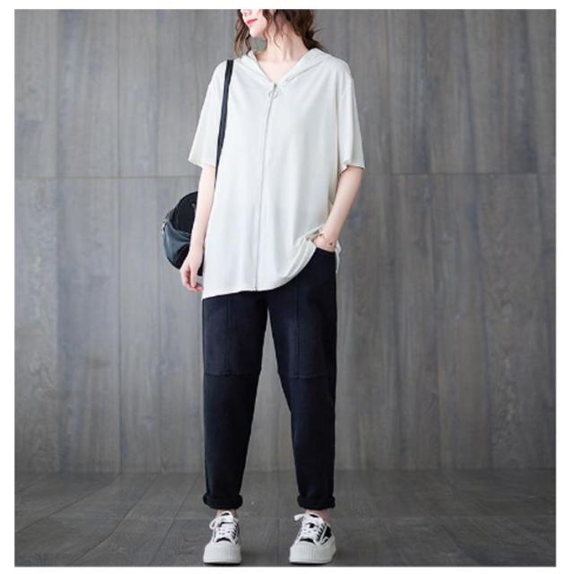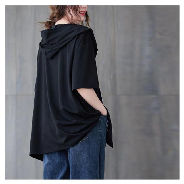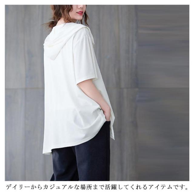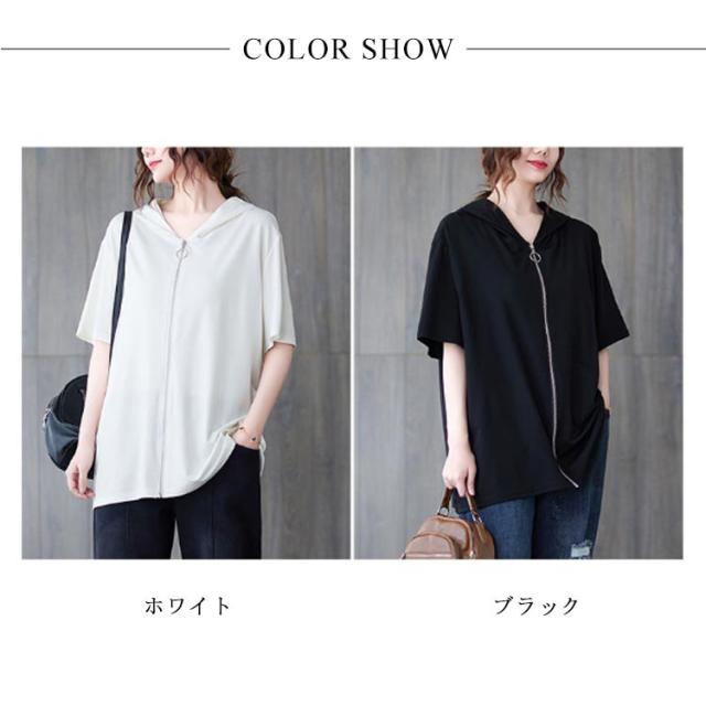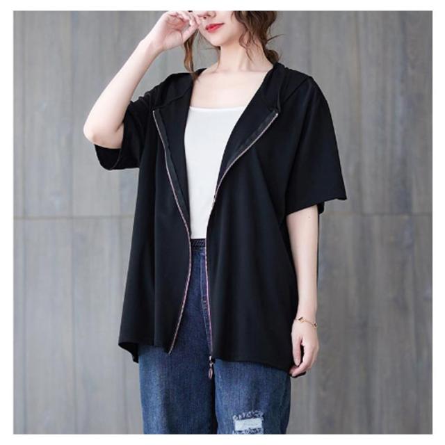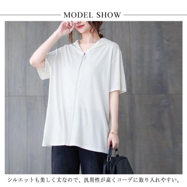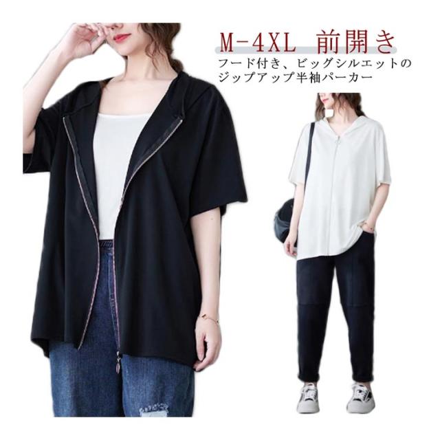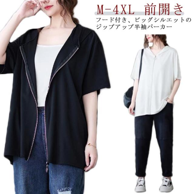 レディース ビッグシルエット 前開き サマーパーカー 半袖パーカー カジュアル 体型カバー トップス 羽織り おしゃれ 五分袖 フード付きパーカー サマーパーカー 大きいサイズ ゆったり 着?せ かわいい 前開き 送料無料