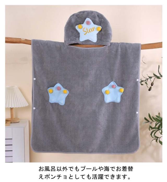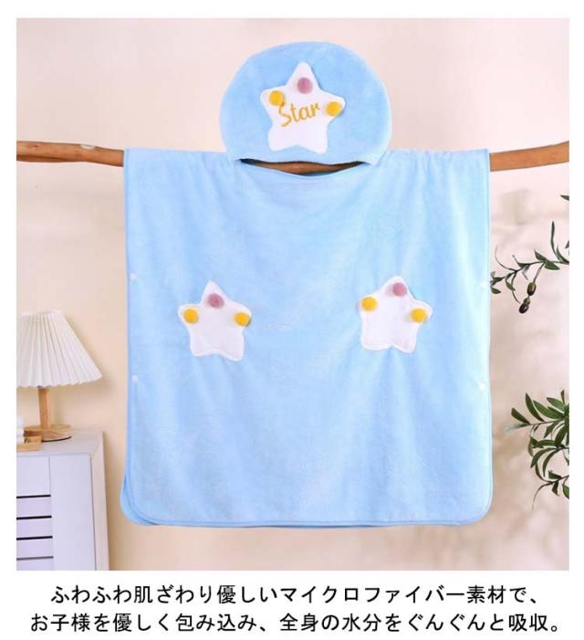 キッズ 着るバスタオル ポンチョタオル フード付き バスタオル タオル ラップタオル 子供用 男の子 女の子 大判 可愛い 星柄 バスローブ 吸水 速乾 お着替えポンチョ 着脱簡単 タオルポンチョ ビーチタオル お風呂上り ルーム プール 送料無料
