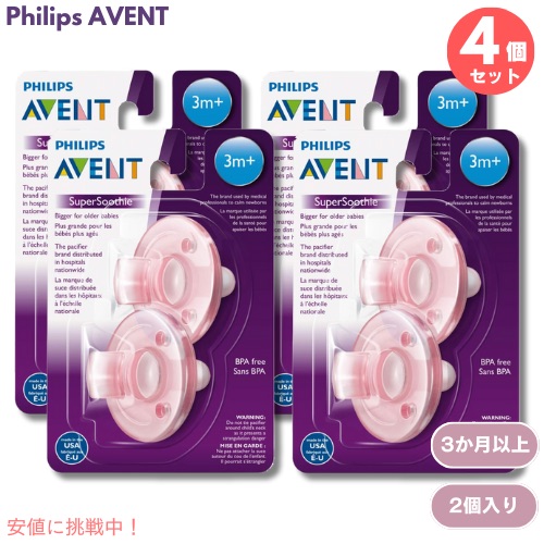 4個セット Philips AVENT フィリップス アヴェント 赤ちゃん用 おしゃぶり 3か月以上用 [ピンク] 2個入り x 4 SCF192 Super Soothie Pacifier 3m+ Pink 2pcs