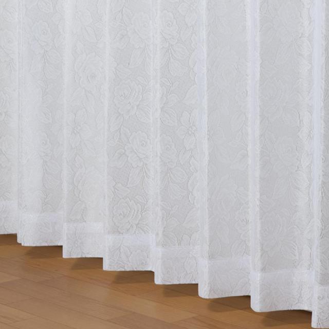 クラシカルな花モチーフを大きく配置した、エレガントなレースカーテンです。存在感のある花柄が窓際を美しく華やかに彩ります。上品な雰囲気のドレープカーテンと相性良くお使いいただけます。