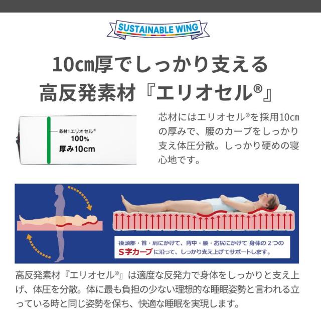| 素材 | 側生地:ポリエステル100% 中材 :エリオセル ニュートン数:170ニュートン |