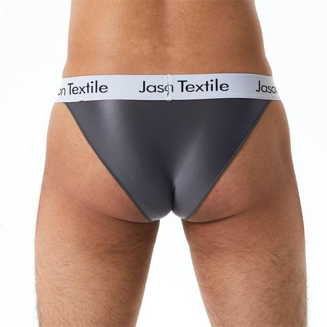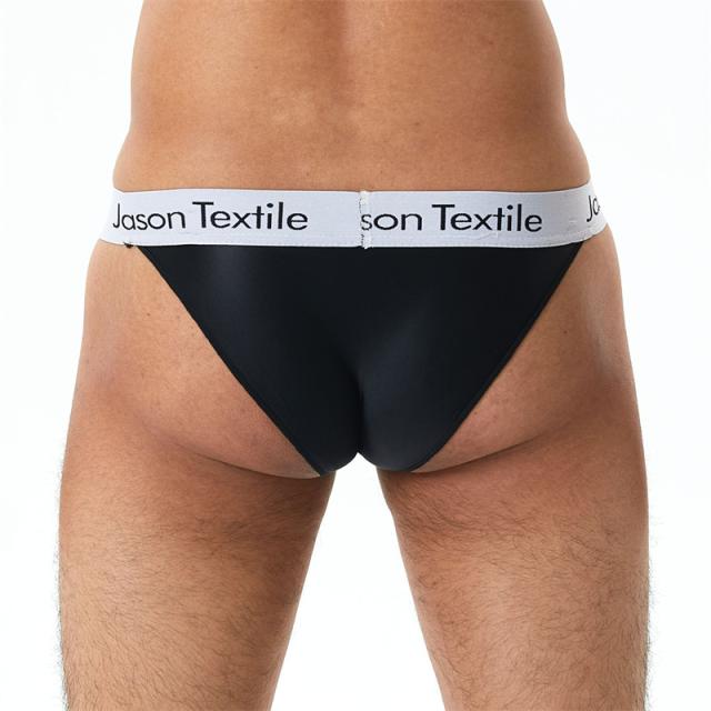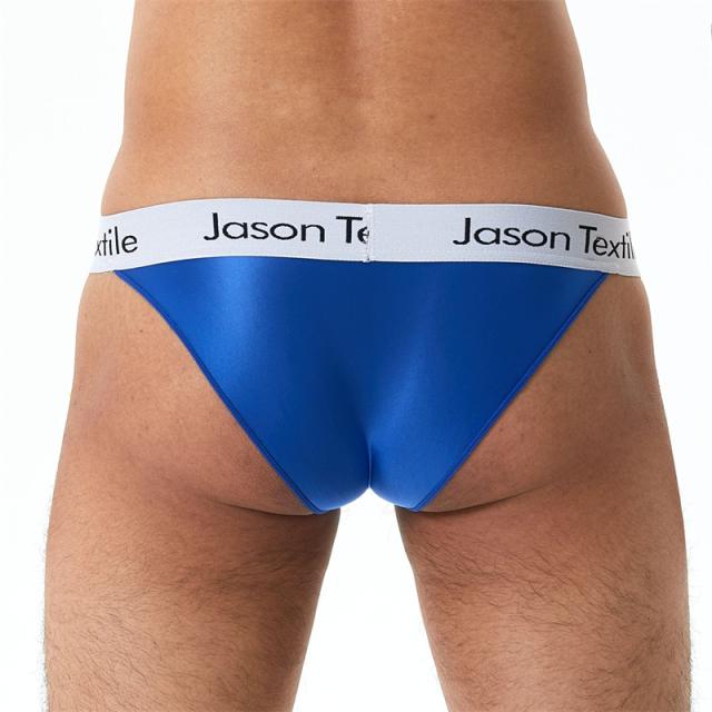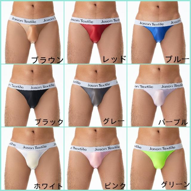 光沢のあるさらさらつるつるサテン風生地のハイカットメンズビキニパンツです。