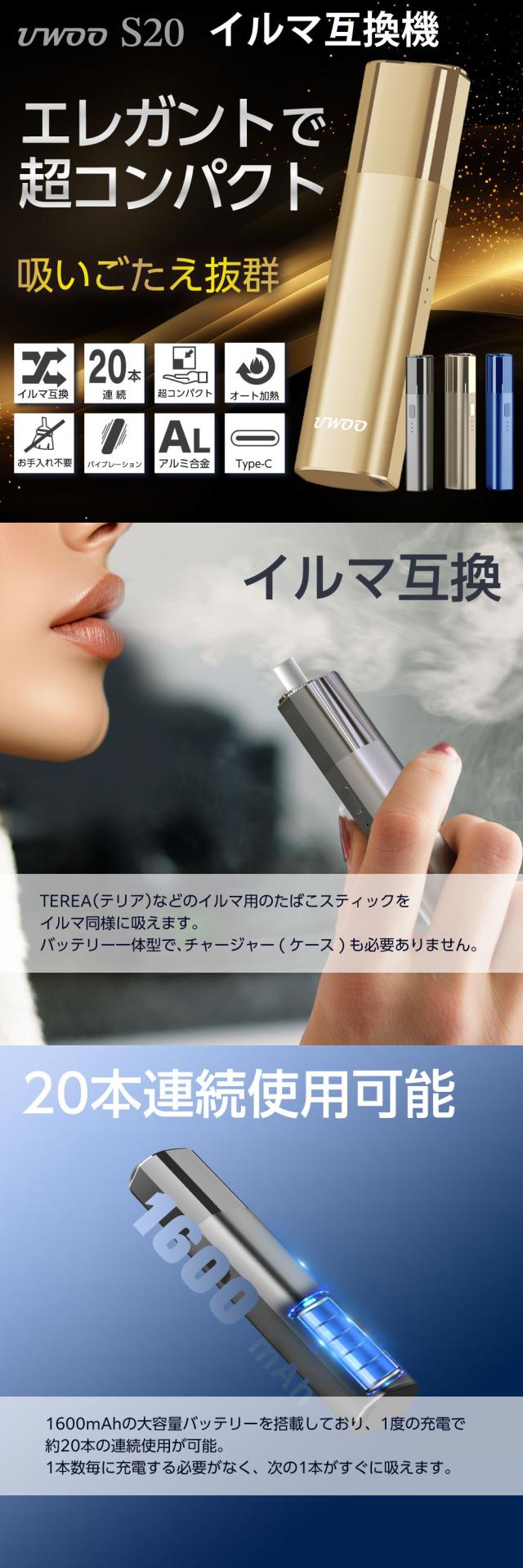 UWOO S20 アイコスイルマi互換機 コンパクト IQOS イルマi互換機 アイコス イルマ互換機 アイコス互換機 電子タバコ 本体 加熱式タバコ 最新 ランキング 連続20本 ユーウー S20 イルマ用 IQOS ILUMA用 アイコスイルマiワン用 テリア用 TEREA用 センティア用 連続 吸い
