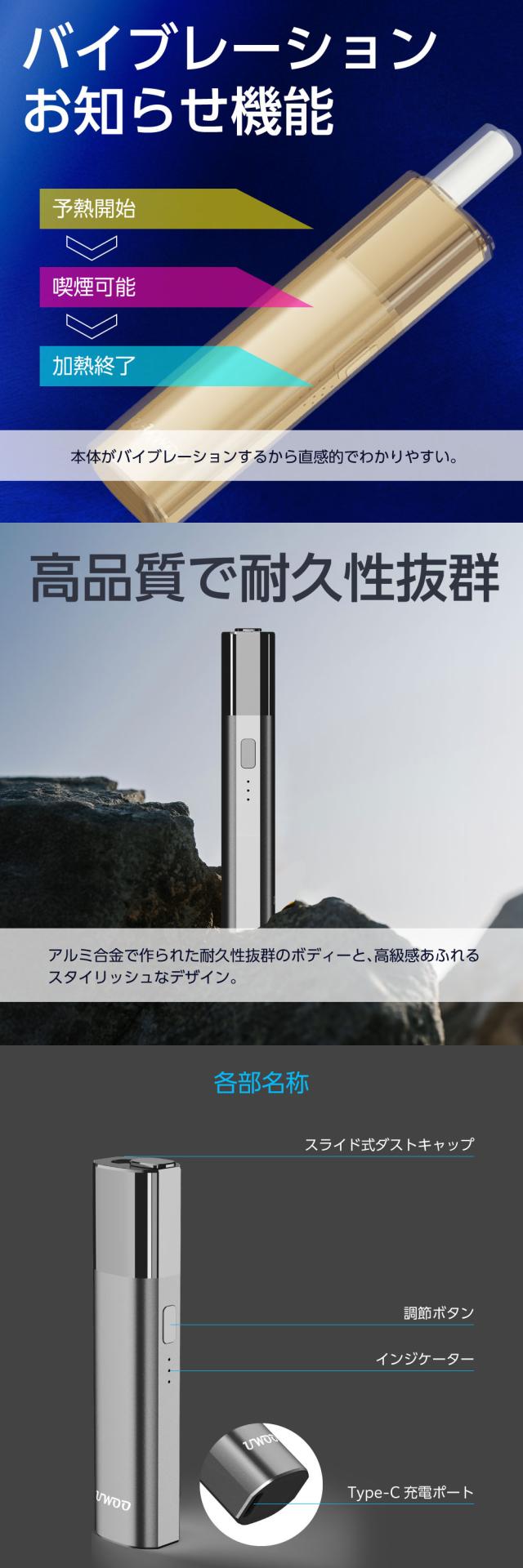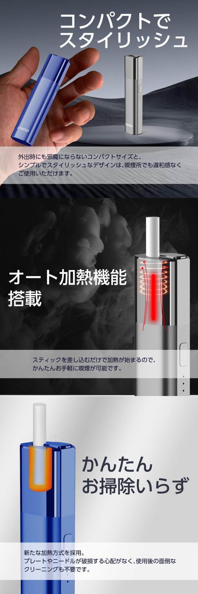 TEREA(テリア)などのアイコスイルマ用のたばこスティックをアイコスイルマ同様に吸えます。 バッテリー一体型で、チャージャー(ケース)も必要ありません。