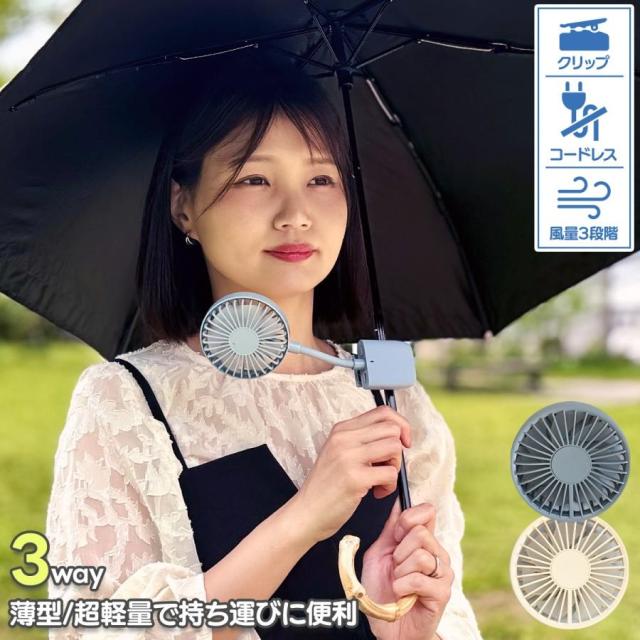 クリップ付きなので、リュックやバッグの持ち手に付けたり日傘にも付けたりすることができます!