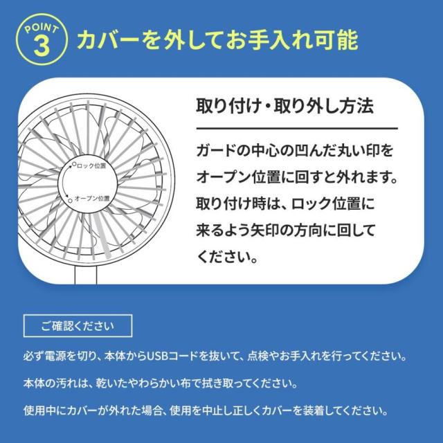 ※顔の近くやお子さまのご使用時は、必ず指や髪の毛が入らないようご注意ください。